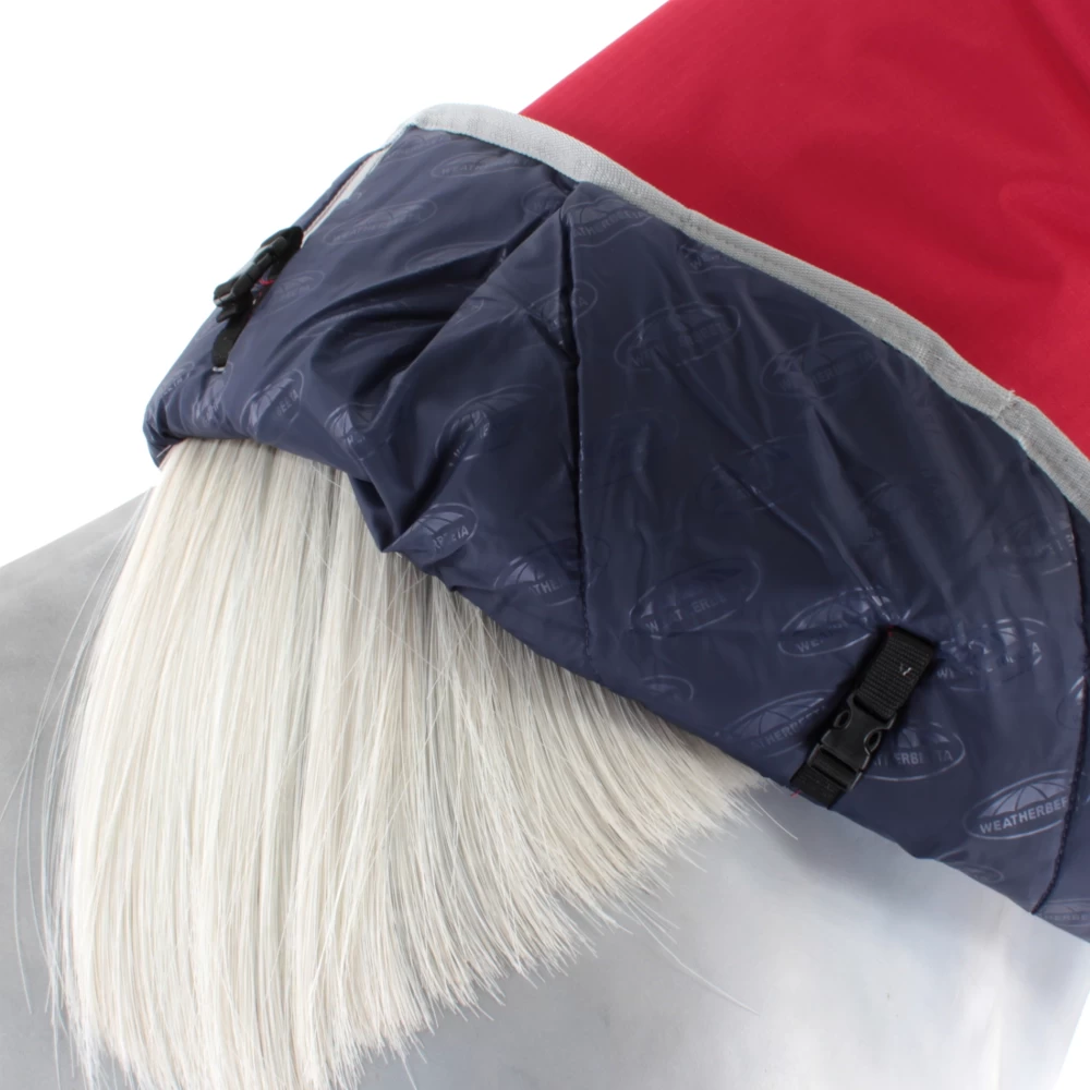 Das Halsteil aus 600D Ripstop Obermaterial mit Repel-Shell-Beschichtung ist, wie die Decke, wasserdicht, winddicht, atmungsaktiv und dabei robust. Es schützt den empfindlichen Hals vor Regen und kühlem Wind. Das weiche Innenfutter aus 210T Polyesterfutter mit der 220g Füllung liegt angenehm auf dem Pferdehals.