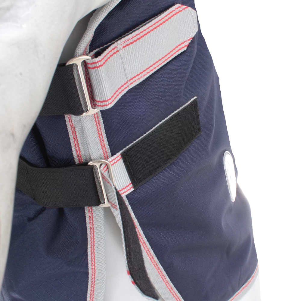 Die Decke ist im Halsbereich mit Ösen ausgestattet an denen das Halsteil befestigt wird. Verschlossen wird dies mit zwei Klettverschlüssen.