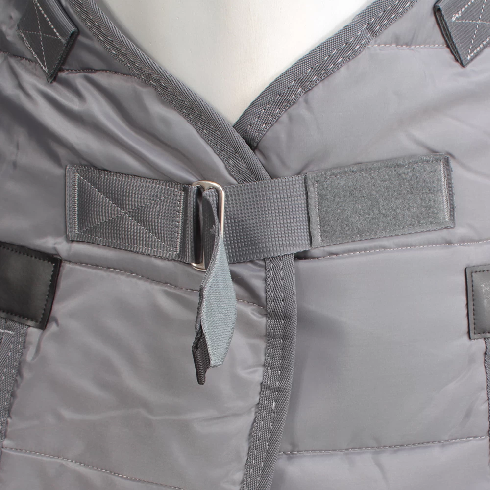 Mit der wärmender 220g Füllung dieser Unterdecke ist man auch für kalte Wintertage perfekt ausgestattet. Die Unterdecke ist aus einem seidigen aber robusten 210 Denier Polyestergewebe gefertigt und wird, ganz einfach, mit der Außendecke verbunden. Befestigungsmöglichkeiten am Halsausschnitt und im Bereich der Hinterhand ermöglichen den perfekten Sitz ohne zu verrutschen. Die Unterdecke wird im Frontbereich mit einem einfachen Klettverschluss geschlossen. Ein weiches Widerristpad und Gehfalten im Bereich der Vorderhand machen den Tragekomfort perfekt.