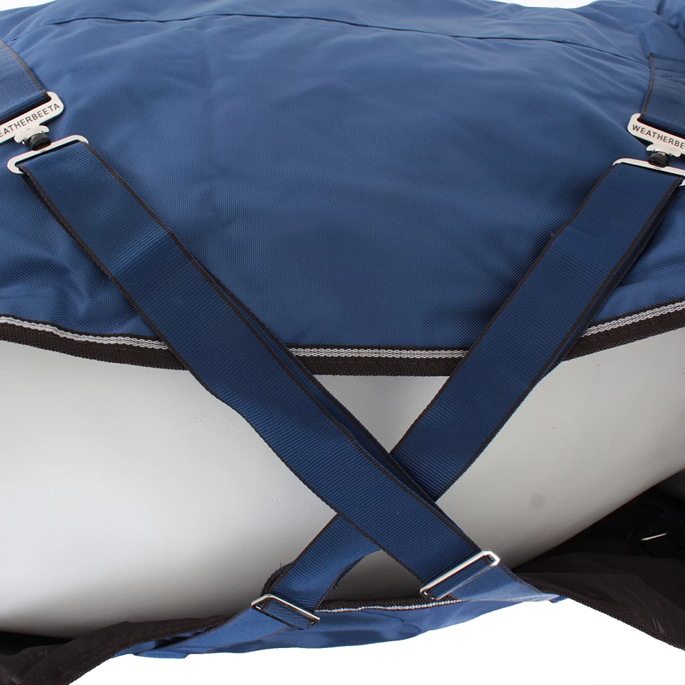 Das Außenmaterial aus 1680D ballistischem Nylon ist extrem robust, reißfest und dadurch maximal langlebig. Die besondere Teflonbeschichtung der Außenhaut macht diese Decke wunderbar schmutzabweisend, wasserdicht und zudem hoch atmungsaktiv. Das angenehm weiche Innenfutter aus 210 Denier Polyester-Gewebe und die 100g Füllung machen diese Decke zur idealen Weidedecke in der Übergangszeit bis hinein in den Winter. Die Decke verfügt über ein abnehmbares Halsteil und ist zudem Liner kompatibel. Der WeatherBeeta Cozi-Guard sorgt für einen unschlagbaren Schutz an der Brust, das großzügige Memory-Schaum-Widerristschonerpad, dass sich der Pferdeform anpasst, hebt die Decke etwas am Widerrist an, um Scheuern zu reduzieren und zusätzlichen Komfort zu bieten. Im Brustbereich wird die Decke mit dem Quick-Clip Brustverschluss verschlossen und bietet damit maximale Verstellbarkeit. Für optimale Sichtbarkeit sorgen die Einsätze am Schweiflatz und die reflektierenden Gehfalten und sorgen damit für zusätzliche Sicherheit auch in der Dämmerung. Die gepolsterten, elastischen, verstellbaren und abnehmbaren Beinschnüre ermöglichen eine sichere und bequeme Passform und garantieren einen optimalen Sitz der Decke.