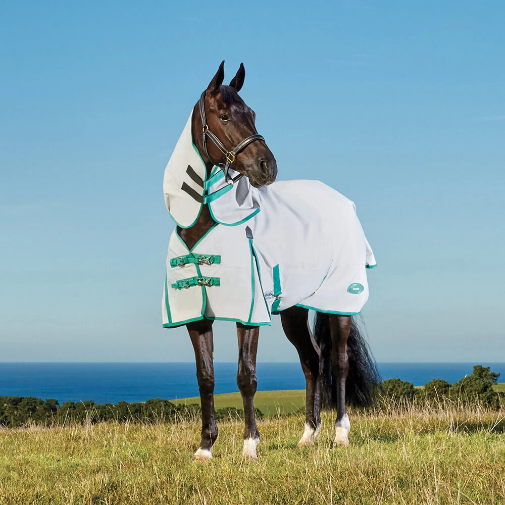 Die Outdoordecken der neuen Green-Tec Kollektion von Weatherbeeta schützen nicht nur Dein Pferd vor Wind und Wetter, sondern auch die Weltmeere vor Plastikmüll. Die helle Farbe der Decke reflektiert das Sonnenlicht und schützt somit auch vor Überhitzung im Sommer. Bei der Produktion einer Pferdedecke werden 340 Plastikflaschen recycelt und über 50% weniger Energie verbraucht. Mit dem Kauf dieser Pferdecken kannst Du also aktiv zum Umweltschutz beitragen.