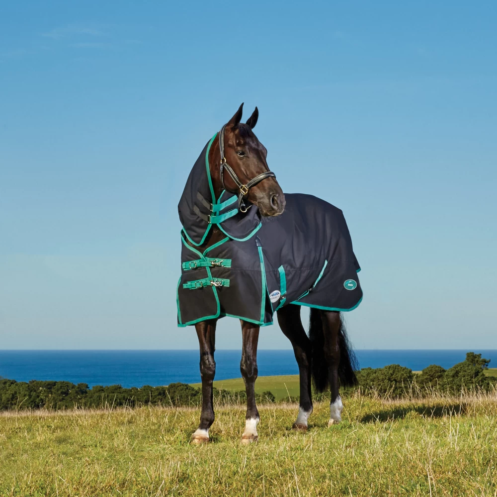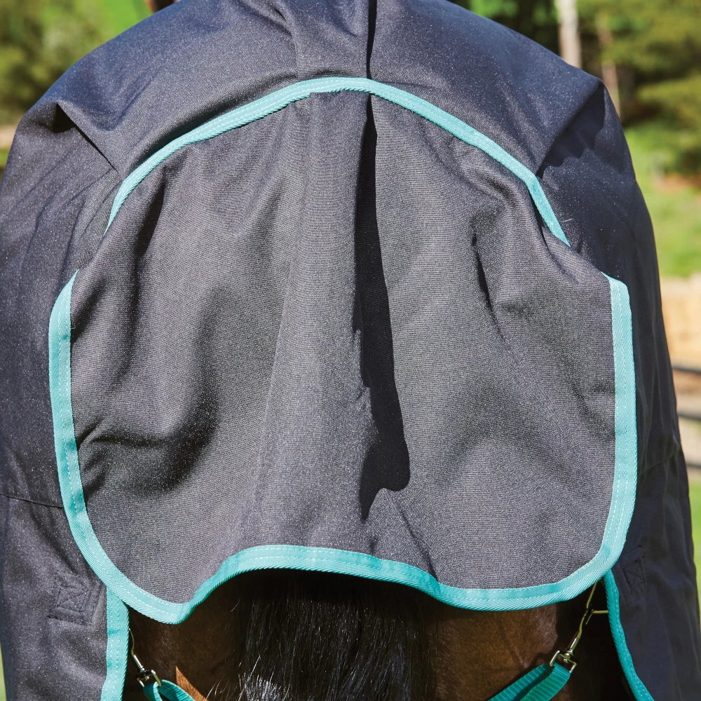 Das robuste Obermaterial aus 900 Denier PCR (POST-CONSUMER-RECYCELTEN PLASTIK) ist wunderbar atmungsaktiv und dabei absolut wasserdicht. Das angenehm weiche Innenfutter aus 150 Denier PCR und die 220g Füllung machen diese Decke zum idealen Begleiter bis hinein in den Winter. Das abnehmbare Halsteil und der große Schweiflatz komplettieren den perfekten Schutz für’s Pferd. Die Gehfalten im Bereich der Vorderhand geben ihm genügend Raum für Bewegung.