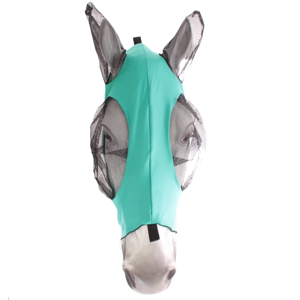 Der Hersteller Weatherbeeta hat hier eine super flexible und dehnbare Fliegenmaske aus sehr leichtem, elastischem und weichem Nylongewebe entworfen. Die Maske wird über den Nüstern des Pferdes über den Kopf und die Ohren nach hinten gezogen, dies garantiert einen optimal enganliegenden Sitz. Die Maske von Weatherbeeta verzichtet komplett auf ein Verschlusssystem, wodurch verhindert wird, dass Insekten unter großzügigen Klettverschlüssen durchkrabbeln können. Die Ohren und die Augeneinsätze sind aus einem feinen Meshgewebe für ungestörte Sicht. Das Meshgewebe ist dabei großzügig bemessen, sodass das Material nicht auf dem empfindlichen Pferdeauge aufliegen kann. Zusätzlich zum Schutz vor Fliegen und Insekten, bietet die Maske Schutz vor UV-Strahlung (UV Block 68 % +) und höchsten Tragekomfort.