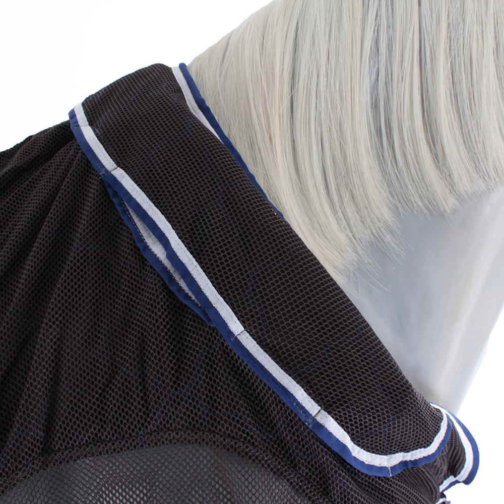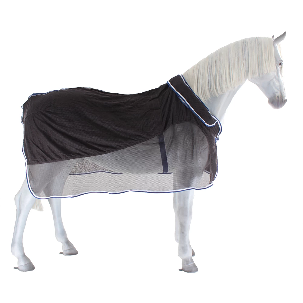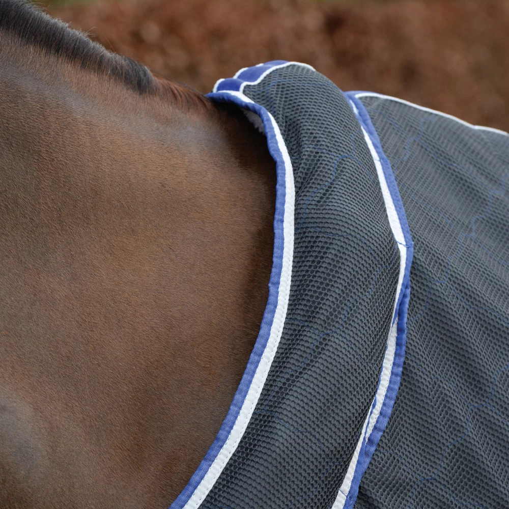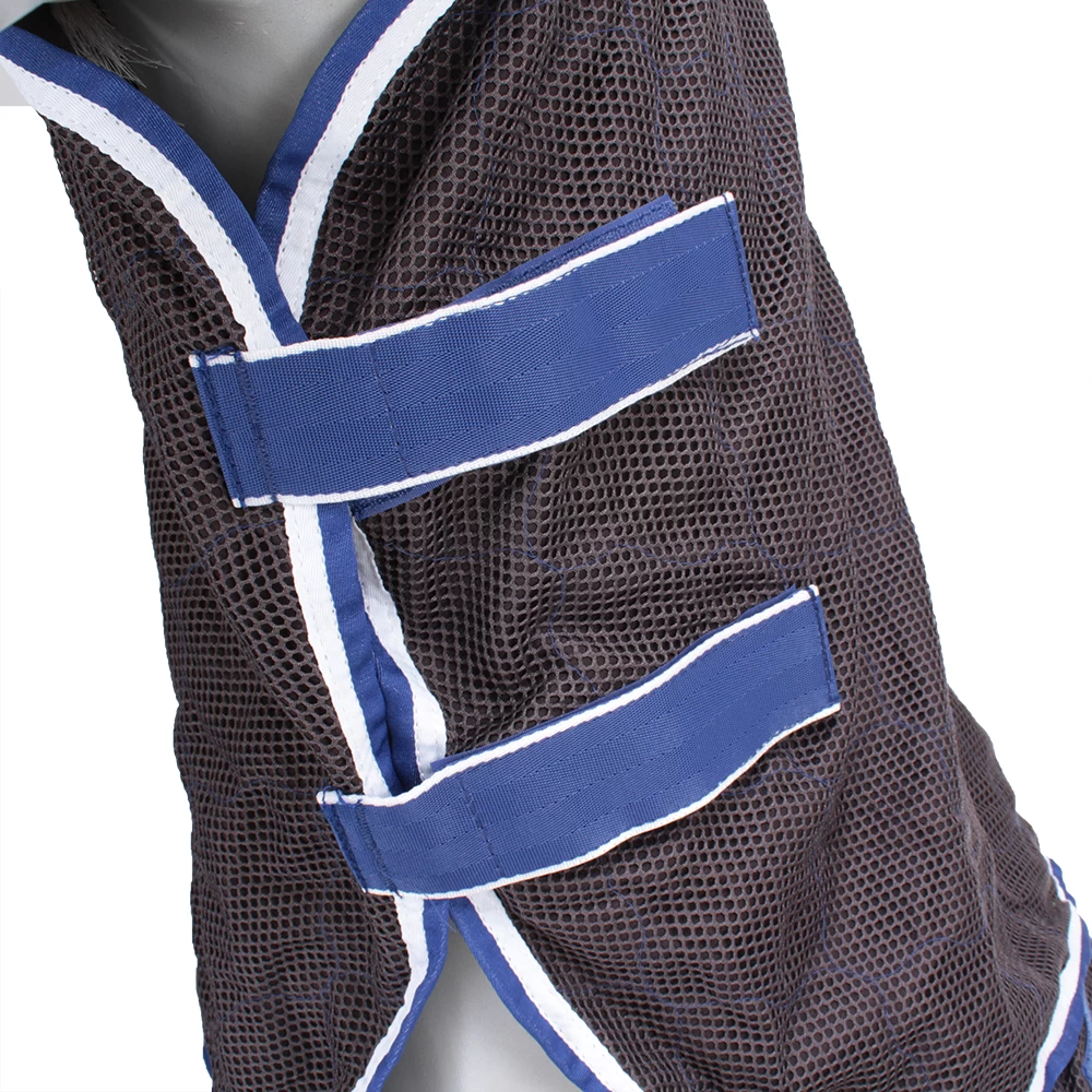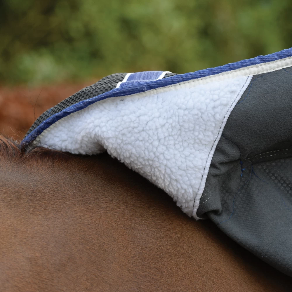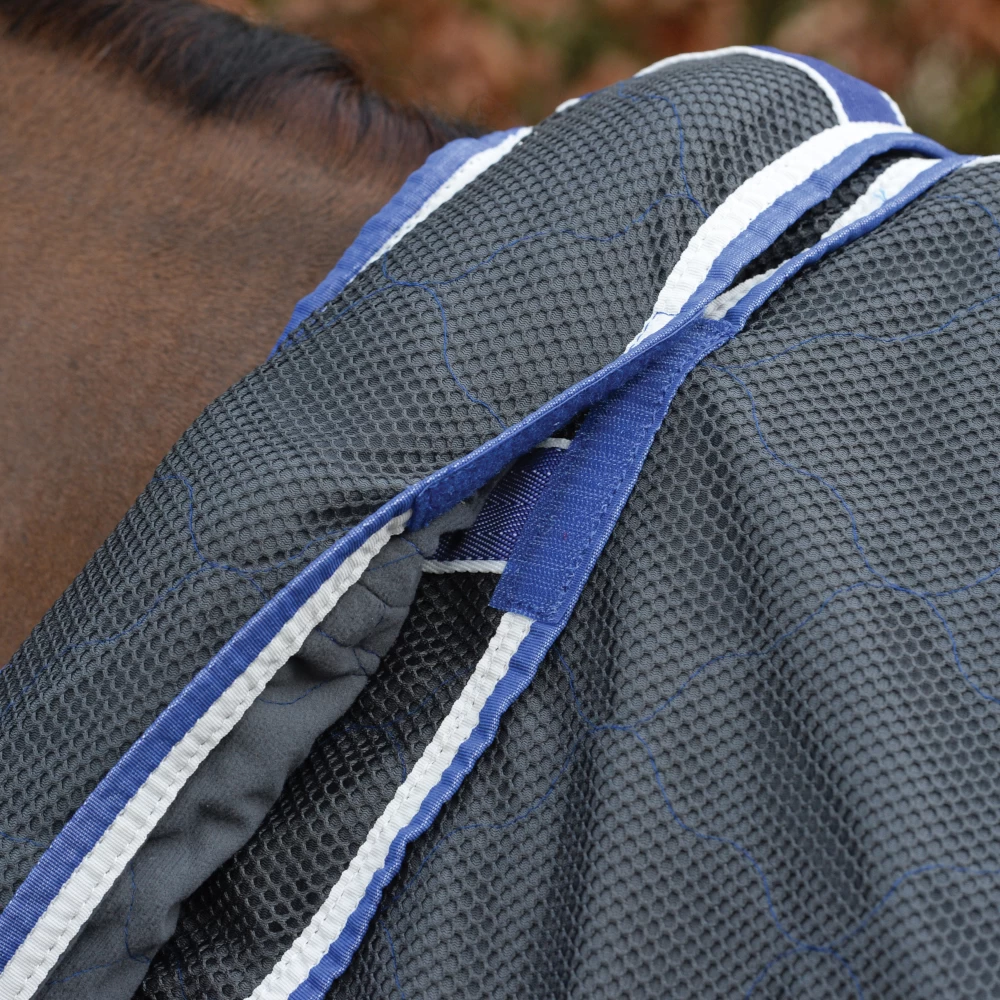 Im Brustbereich wird die Decke mit einer verstellbaren Schnalle sicher verschlossen. Ein verstellbarer Bauchgurt und die Schweifkordel machen den sicheren Sitz der Decke perfekt.